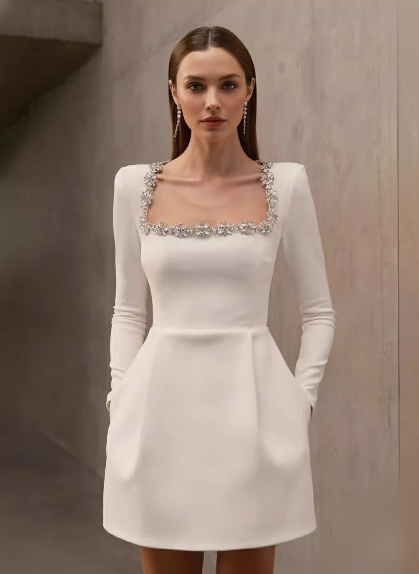 New sleeveless square neck diamond dress lady style light luxury niche high-end