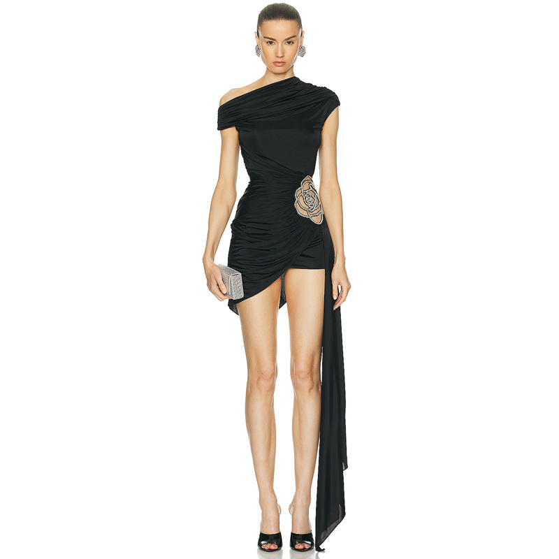 Spring and summer fashion personality temperament elegant oblique collar three-dimensional decoration high waist slim long skirt suit women
